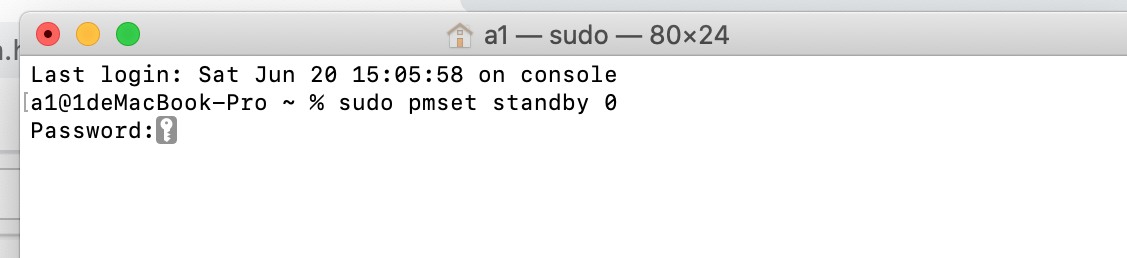 ,根据图二输入命令:sudo pmset standby 0 ,接着你输入密码回车;