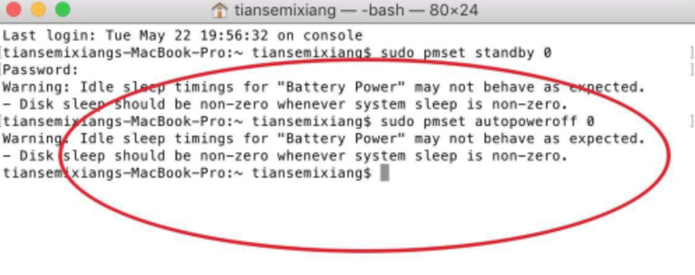 根据图一再次输入命令:sudo pmset autopoweroff 0