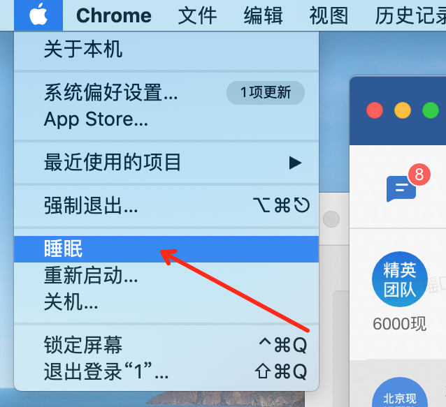 接着点击logo,点击上面菜单的睡眠。稍微等待十几分钟后,再按键盘上的任意键,看看是否能够唤醒电脑。