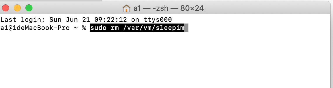 如果不行的话,那么就需要使用大招了,在终端APP输入命令:sudo rm /var/vm/sleepimage